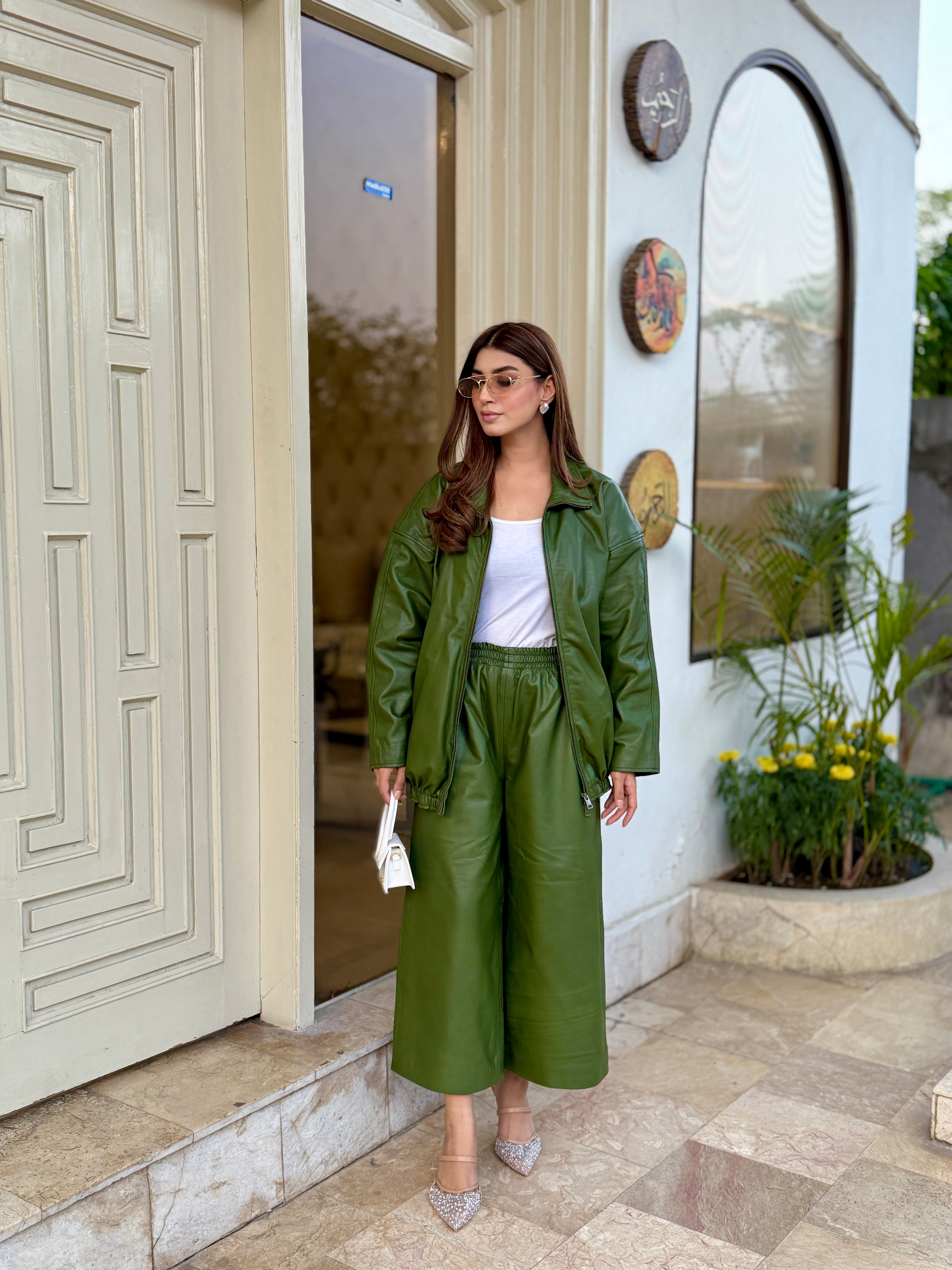 Crafted from 100% pure sheep leather, this emerald-toned jacket brings together softness, strength, and unmistakable luxury. Designed for the modern woman who carries confidence with effortless style.
